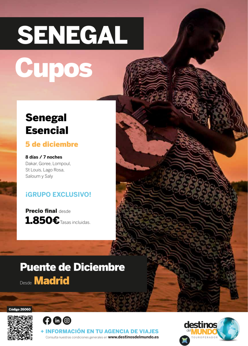 🇸🇳🐃SENEGAL puente de diciembre 8 días / 7 noches origen: Madrid salida: 05 diciembre 2026 desde 1.850€ 🇸🇳